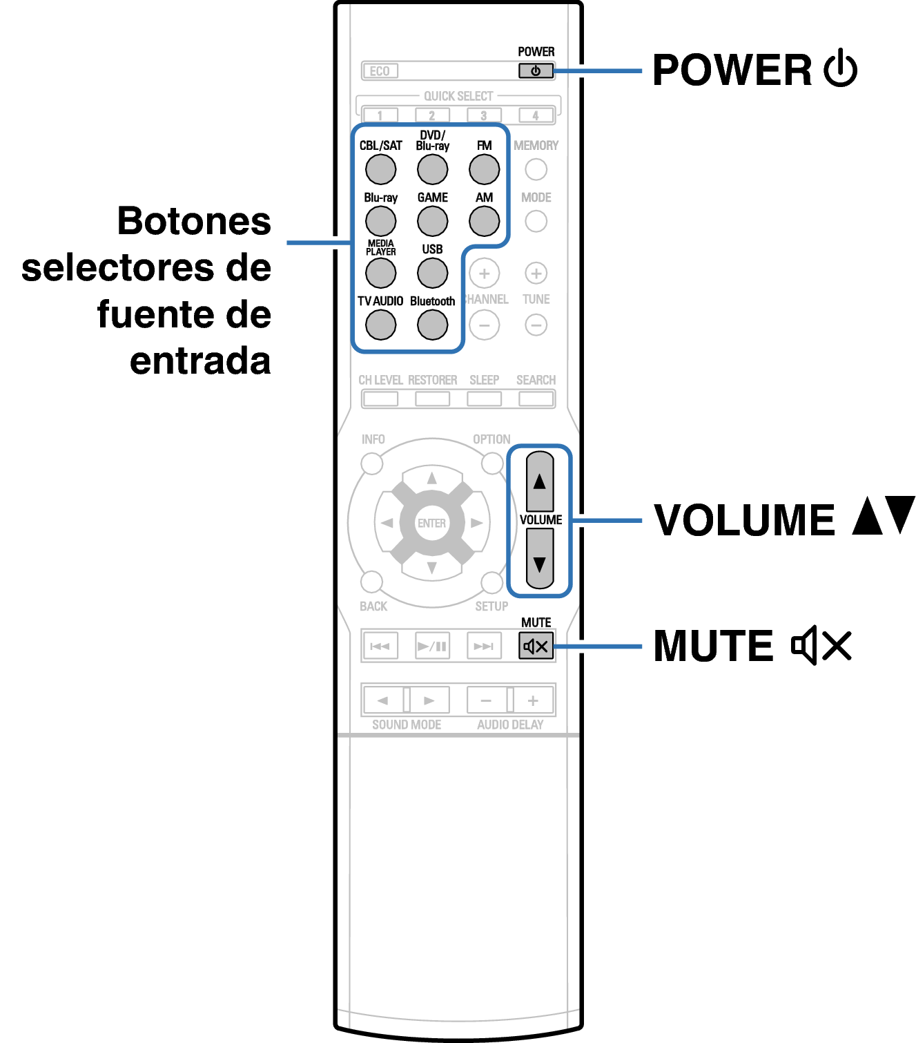 Botones en el mando a distancia utilizados para esta operación