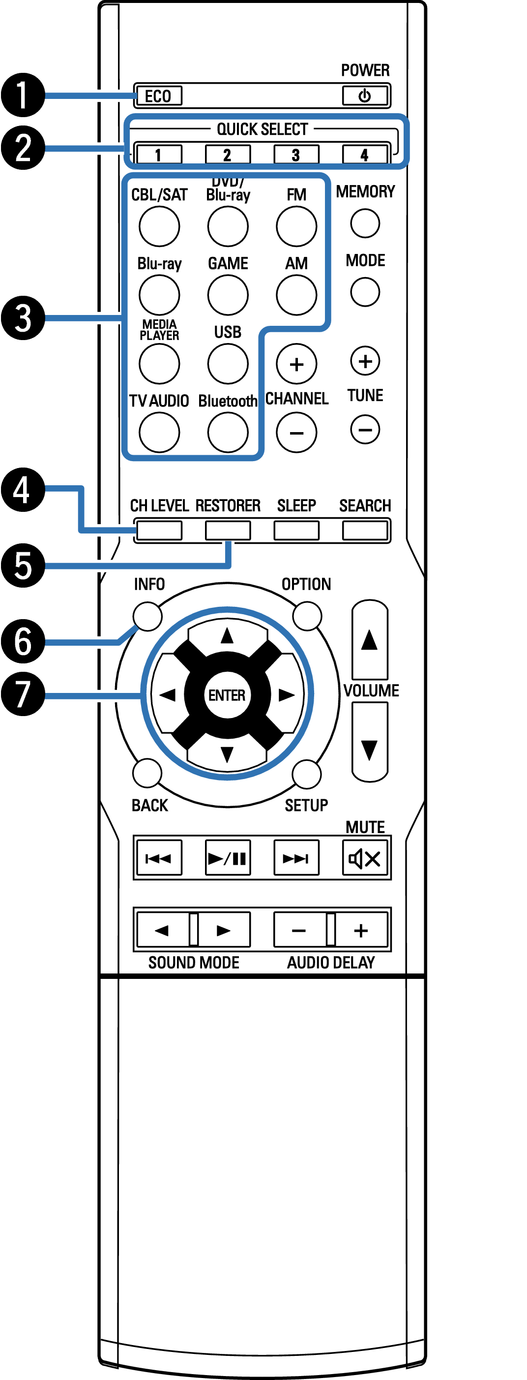 Вызывают настройки, зарегистрированные на каждой кнопке, такие как источник ввода, уровень громкости и настройки режима звука. ссылка