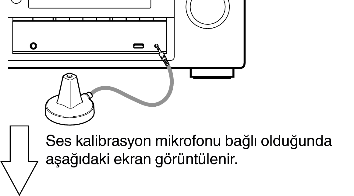 Ses kalibrasyon mikrofonunu takarken mikrofonun ucunu yukarıya bakacak şekilde yerleştirin ve yüksekliği oturma pozisyonundaki bir dinleyicinin kulak yüksekliğine eşit şekilde ayarlayın.