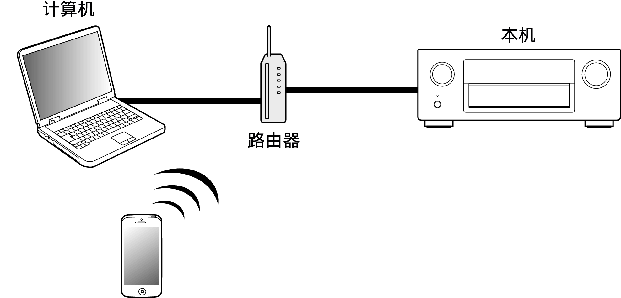 可在本机上通过网络播放存储在iPhone、iPod touch、iPad或iTunes中的音乐文件。