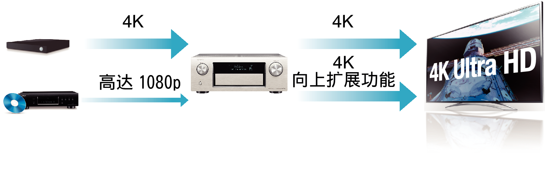 本机配有允许模拟视频或SD(标准清晰度)视频以4K(3840×2160像素)通过HDMI进行输出的4K视频升级功能。此功能使设备可通过单根HDMI电缆连接到电视,并可产生任何视频源的高清晰度图像。