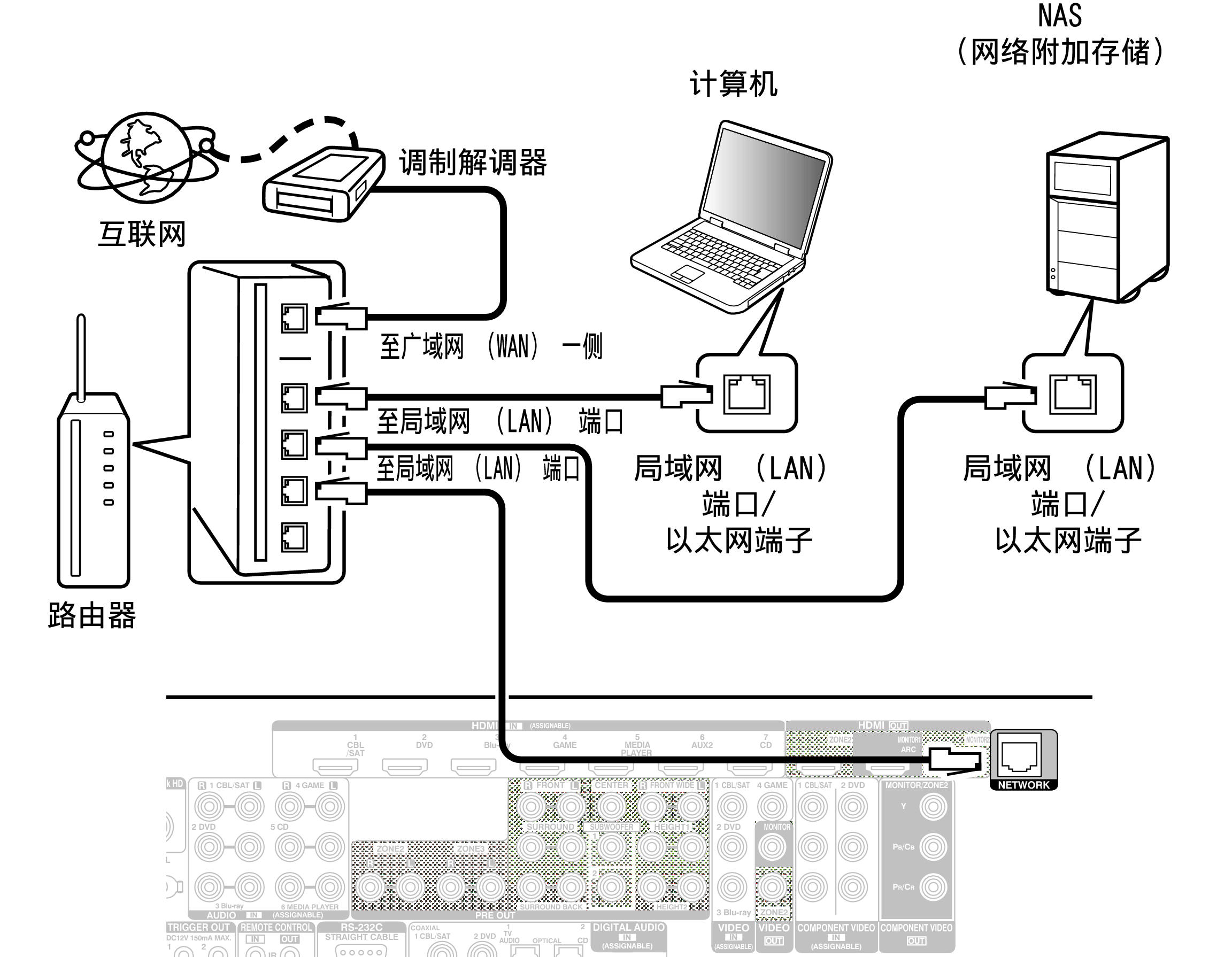 要通过有线LAN进行连接,请使用LAN电缆将路由器连接到本机,如下图所示。