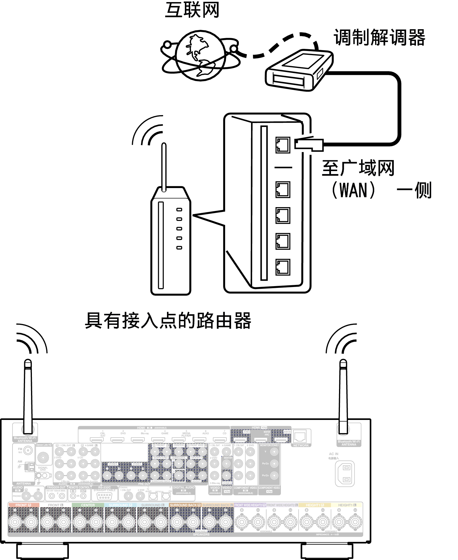 请勿将NETWORK端子直接连接到计算机上的LAN端口/以太网端子。