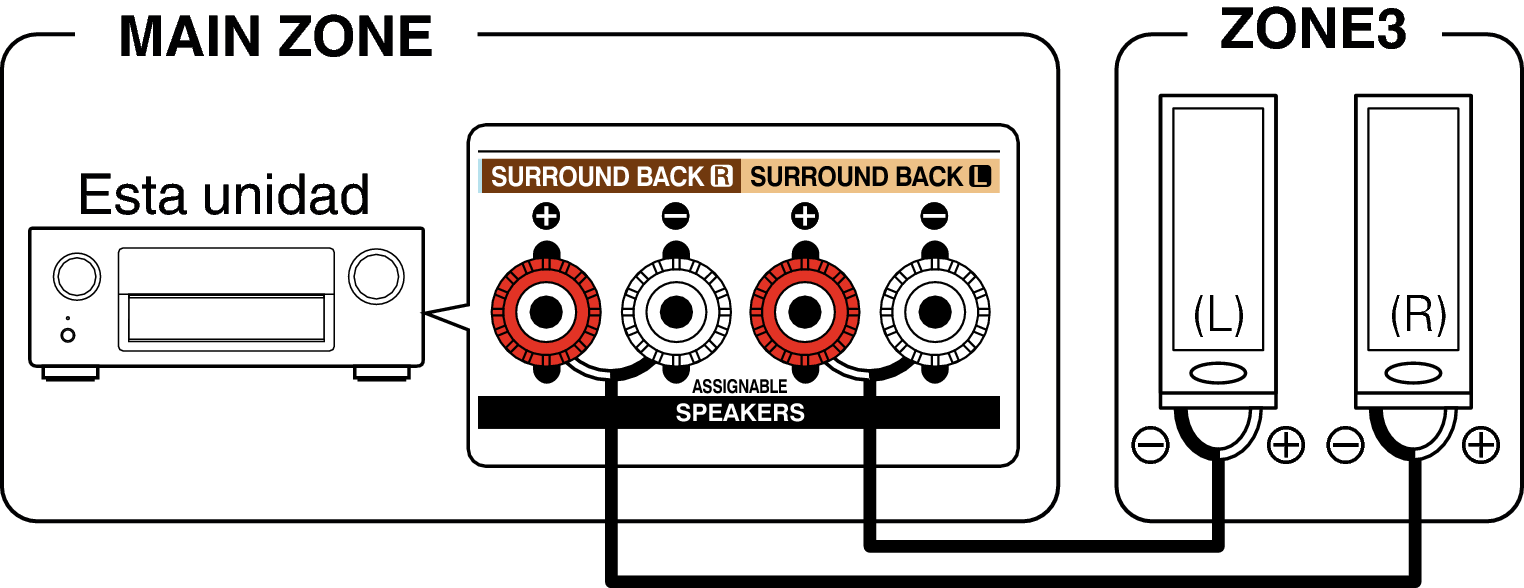 Las señales de audio de los conectores de salida de audio ZONE2 y ZONE3 de esta unidad se transmiten hacia los amplificadores de ZONE2 y ZONE3 y se reproducen en estos amplificadores.