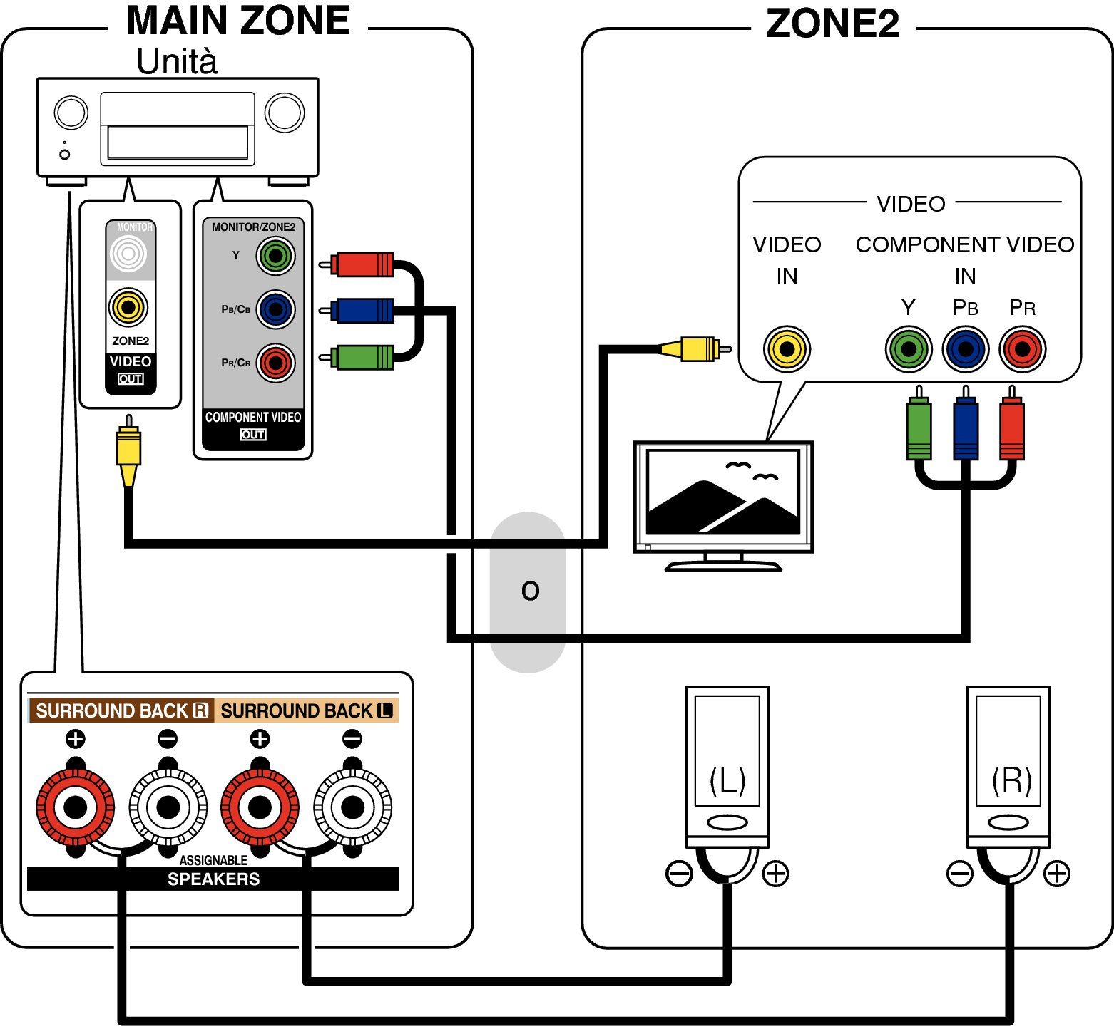 Se “Uscita Video Comp.” nel menu è impostato su “ZONE2”, il connettore di uscita video component trasmette il segnale video della ZONE2. link