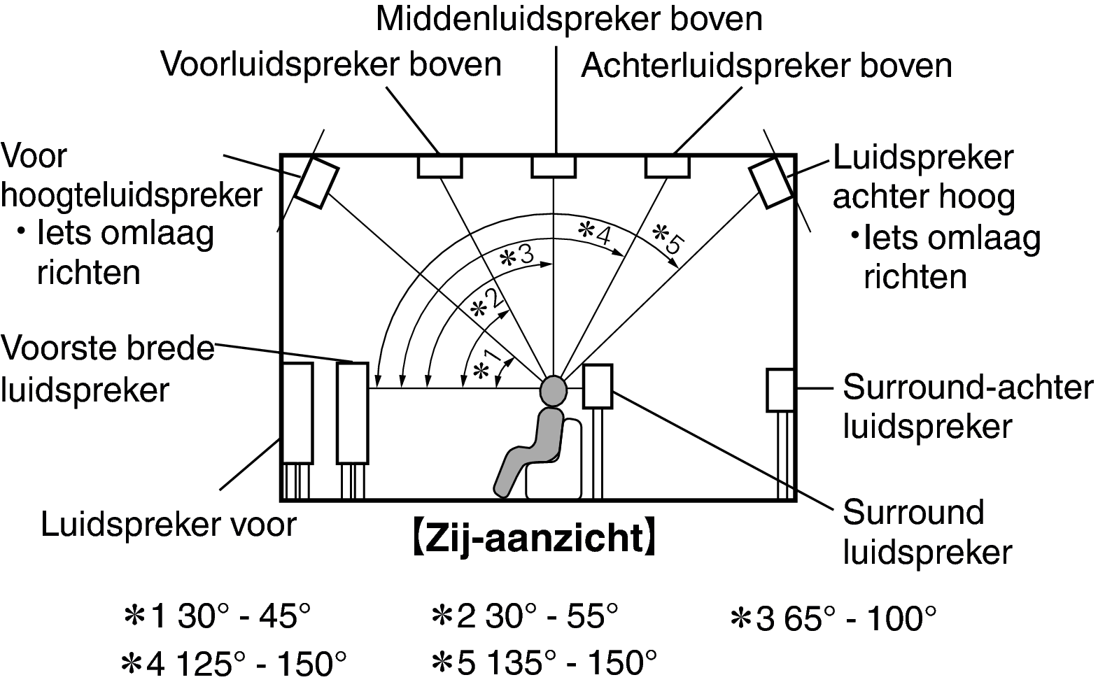 Installeer voor breed en voor hoog luidsprekers wanneer u Audyssey DSX® gebruikt.