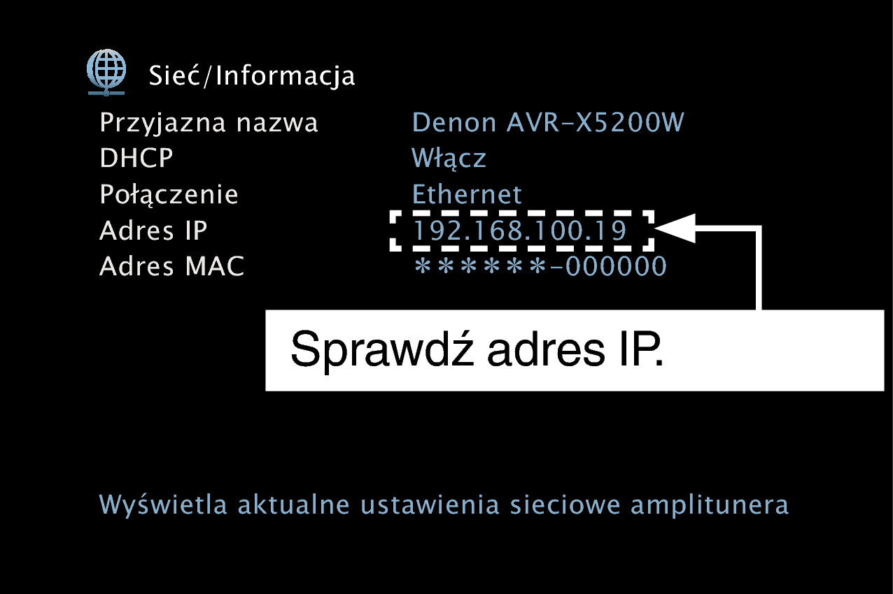 Przykładowo, jeżeli adresem IP przypisanym do amplitunera jest “192.168.100.19”, wprowadź “http://192.168.100.19”.