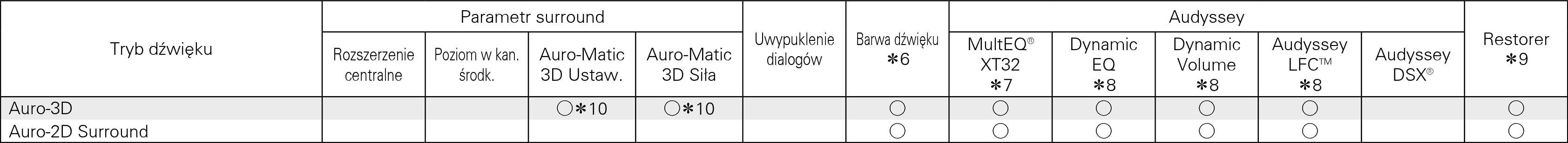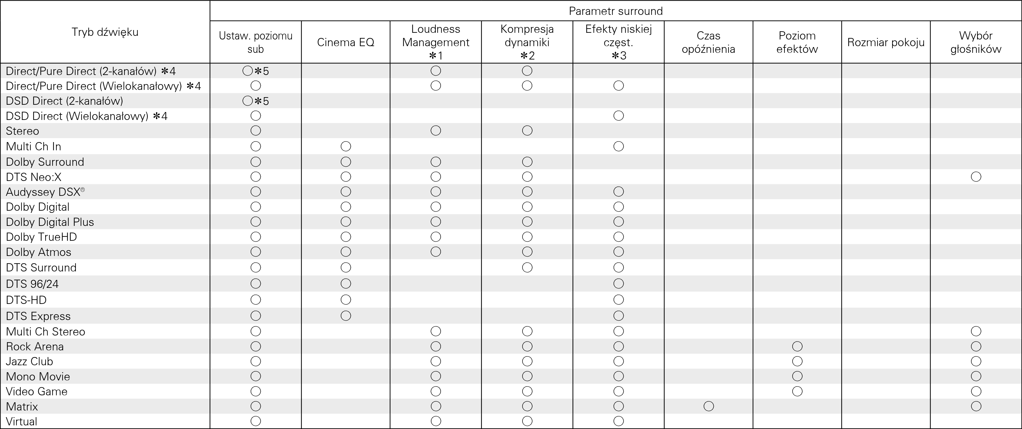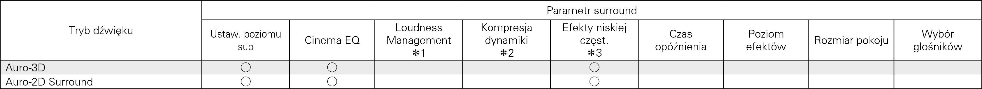 Można to wybrać, gdy odtwarzany jest sygnał Dolby Digital, Dolby Digital Plus, Dolby TrueHD, Dolby Atmos lub DTS.