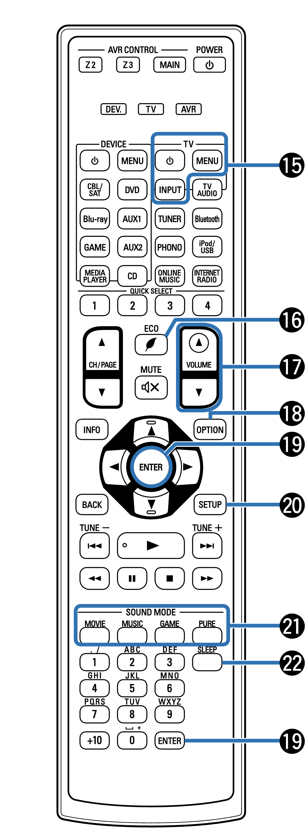 Służą do przełączania strefy (MAIN ZONE, ZONE2, ZONE3) obsługiwanej za pomocą pilota zdalnego sterowania. link, link