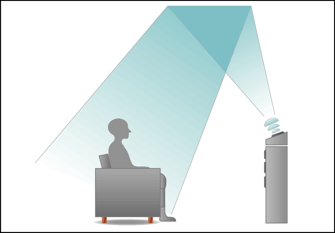 Динамики Dolby Atmos Enabled отражают звук от потолка так, чтобы он проходил у Вас над головой, с помощью специального динамика, направленного вверх, который помещается на пол.