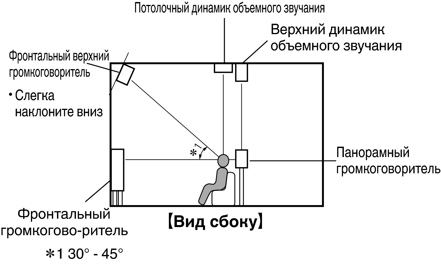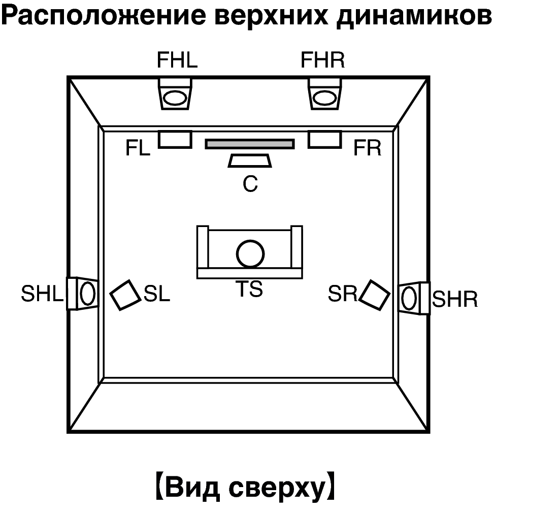 Расположение, включая верхние динамики и потолочные динамики