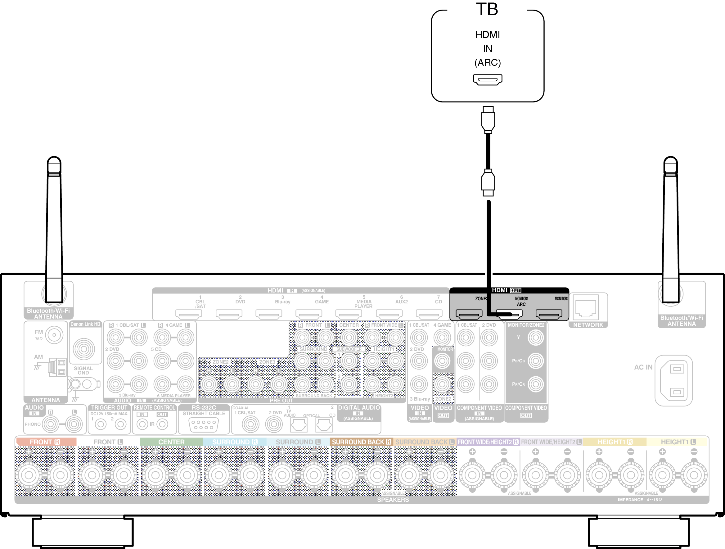 Для подключения к данному устройству телевизора, совместимого с режимом ARC, используйте кабель HDMI.