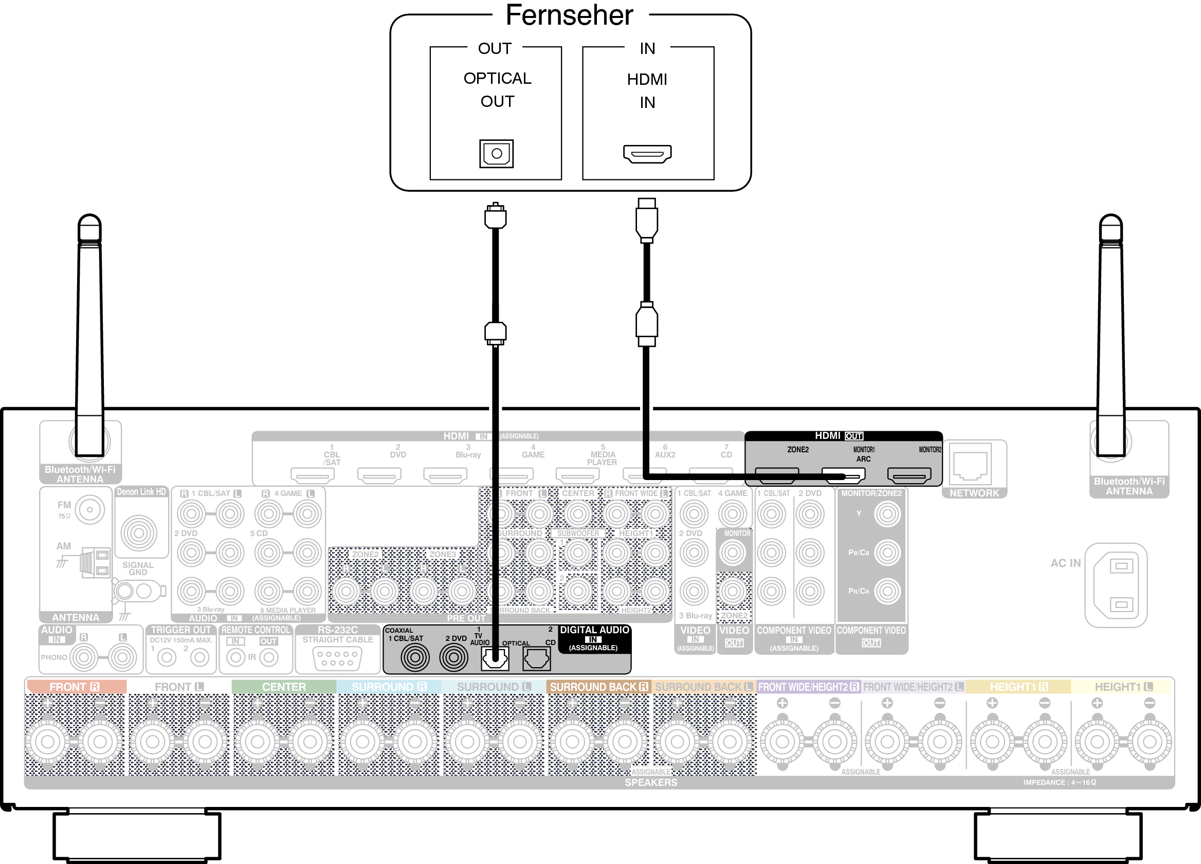 Verwenden Sie ein HDMI-Kabel, um den Fernseher an dieses Gerät anzuschließen.