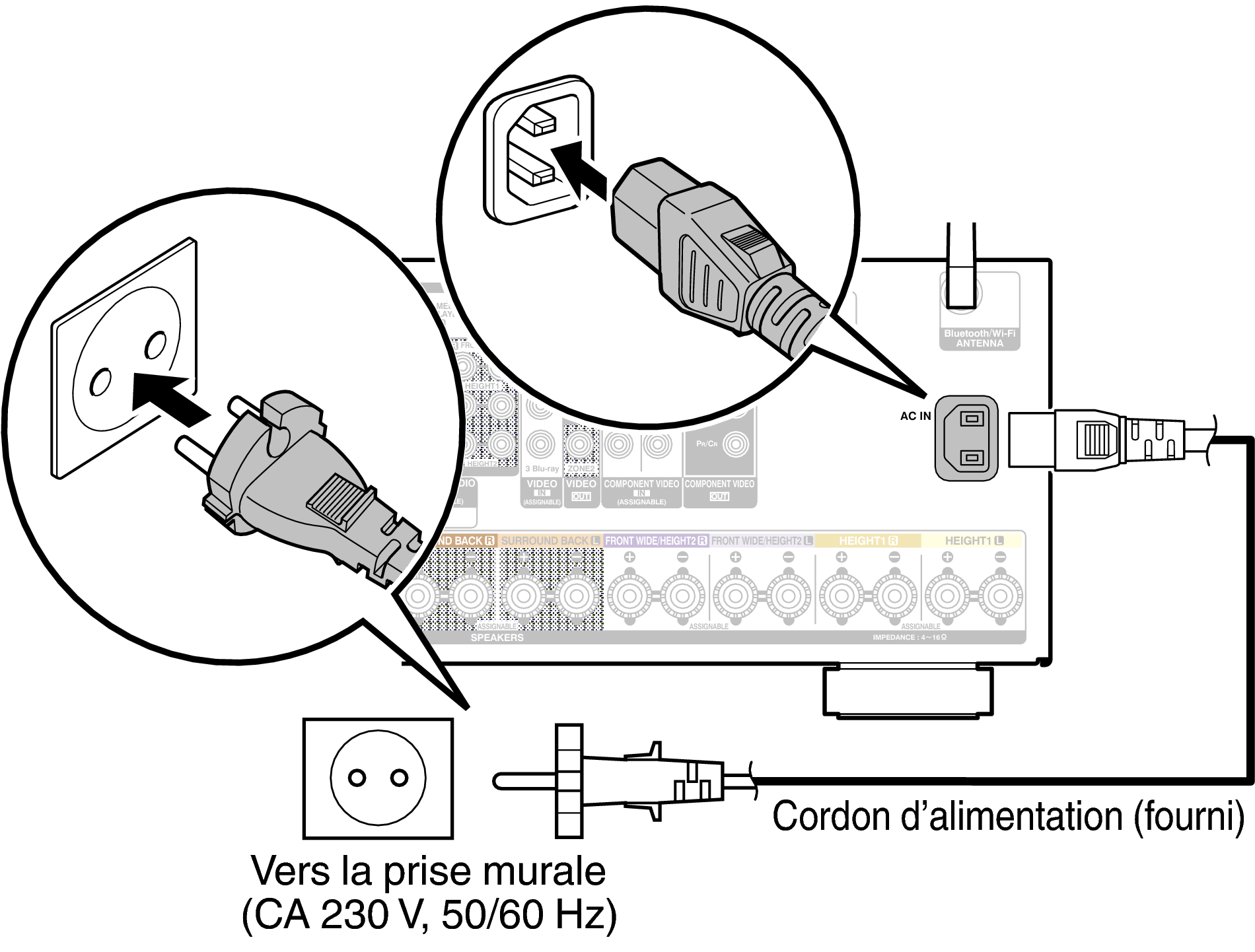 Une fois toutes les connexions effectuées, insérez la fiche d’alimentation dans la prise murale.