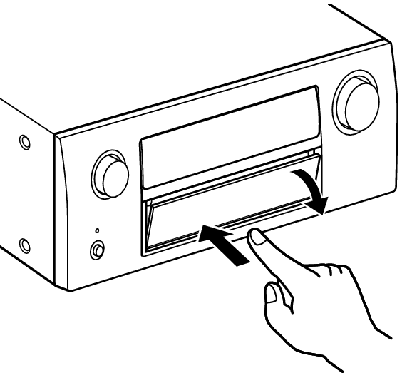 Lorsque vous utilisez les touches et/ou les bornes derrière la porte, appuyez sur le bas de la porte pour l’ouvrir. Faites attention à ne pas coincer vos doigts lorsque vous refermez la porte.