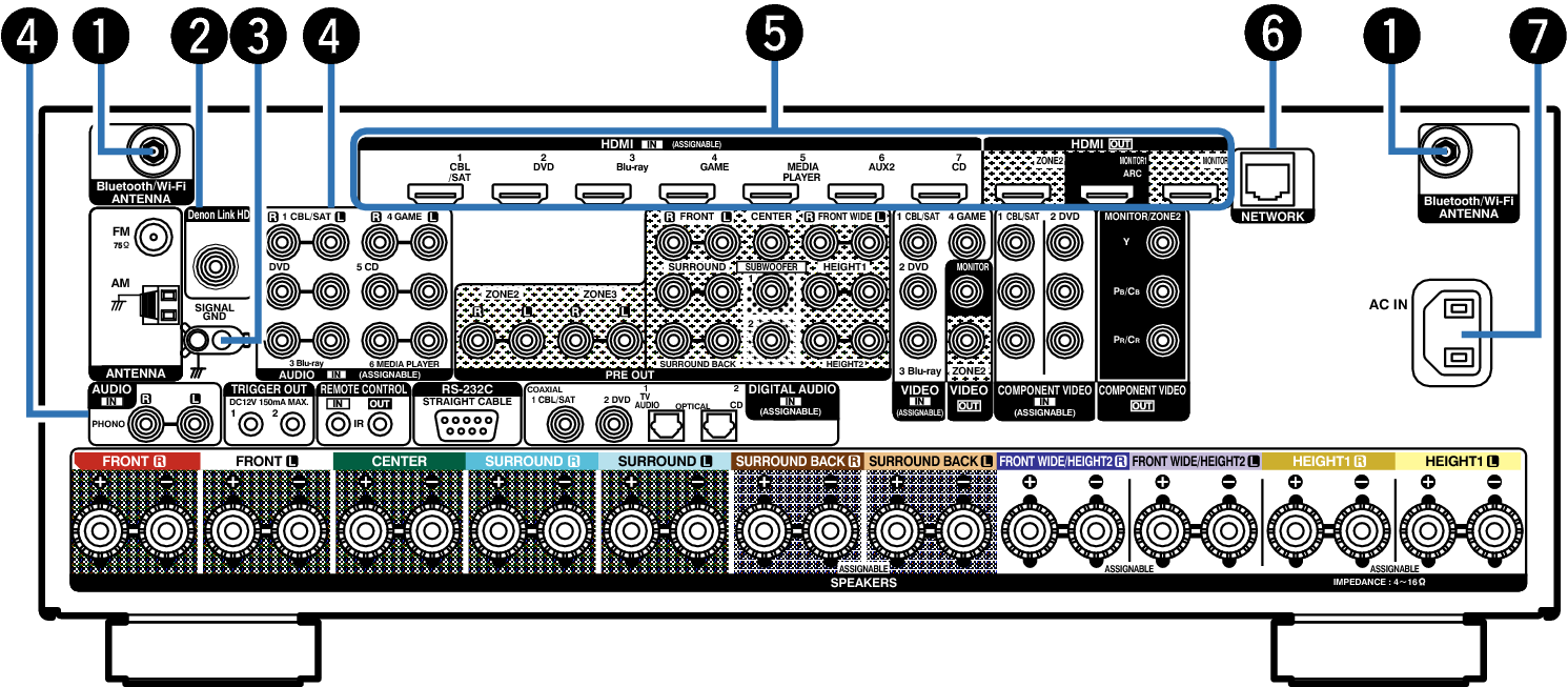 Wordt gebruikt voor het aansluiten van een met Denon Link HD-compatibele Blu-ray Disc-speler. koppeling
