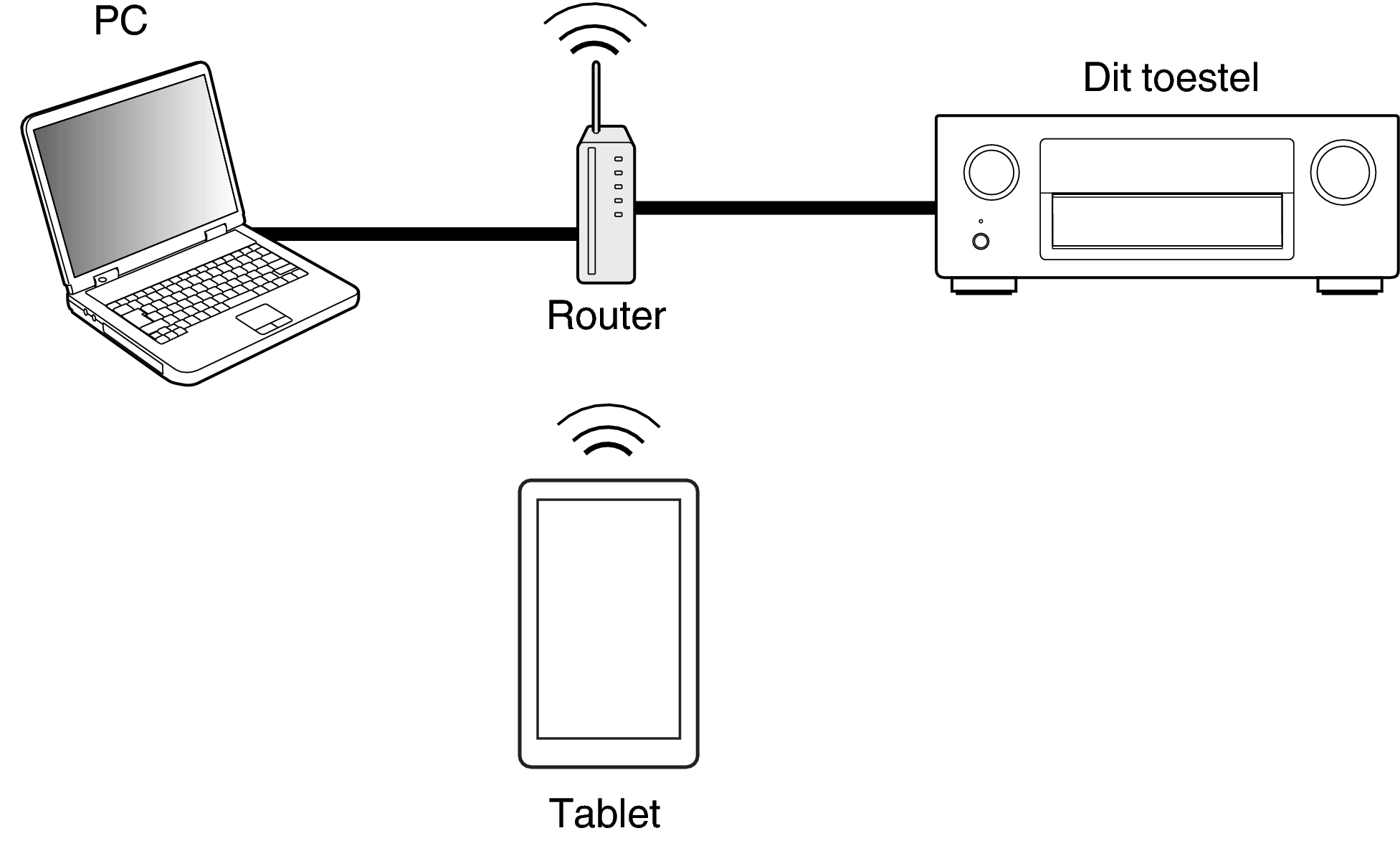 Dit toestel en de pc of tablet moeten correct met het netwerk zijn verbonden om de webregelfunctie te gebruiken. (Aansluiten op een thuisnetwerk (LAN)koppeling)
