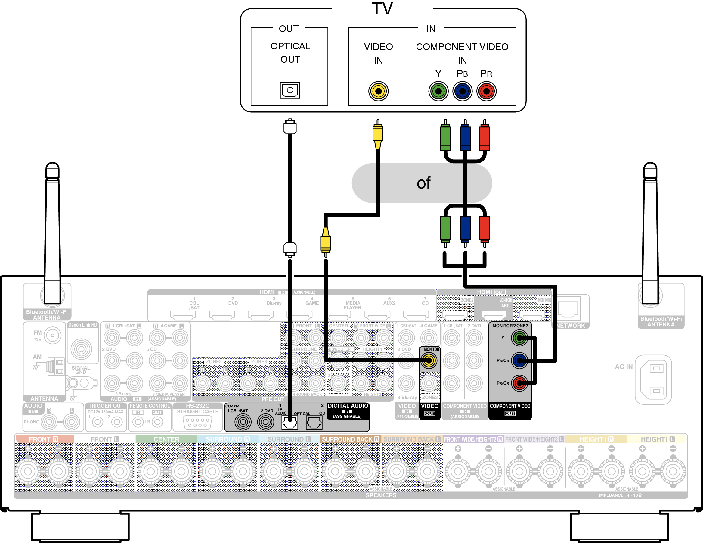 Gebruik een component video- of videokabel om de tv aan te sluiten op dit toestel.