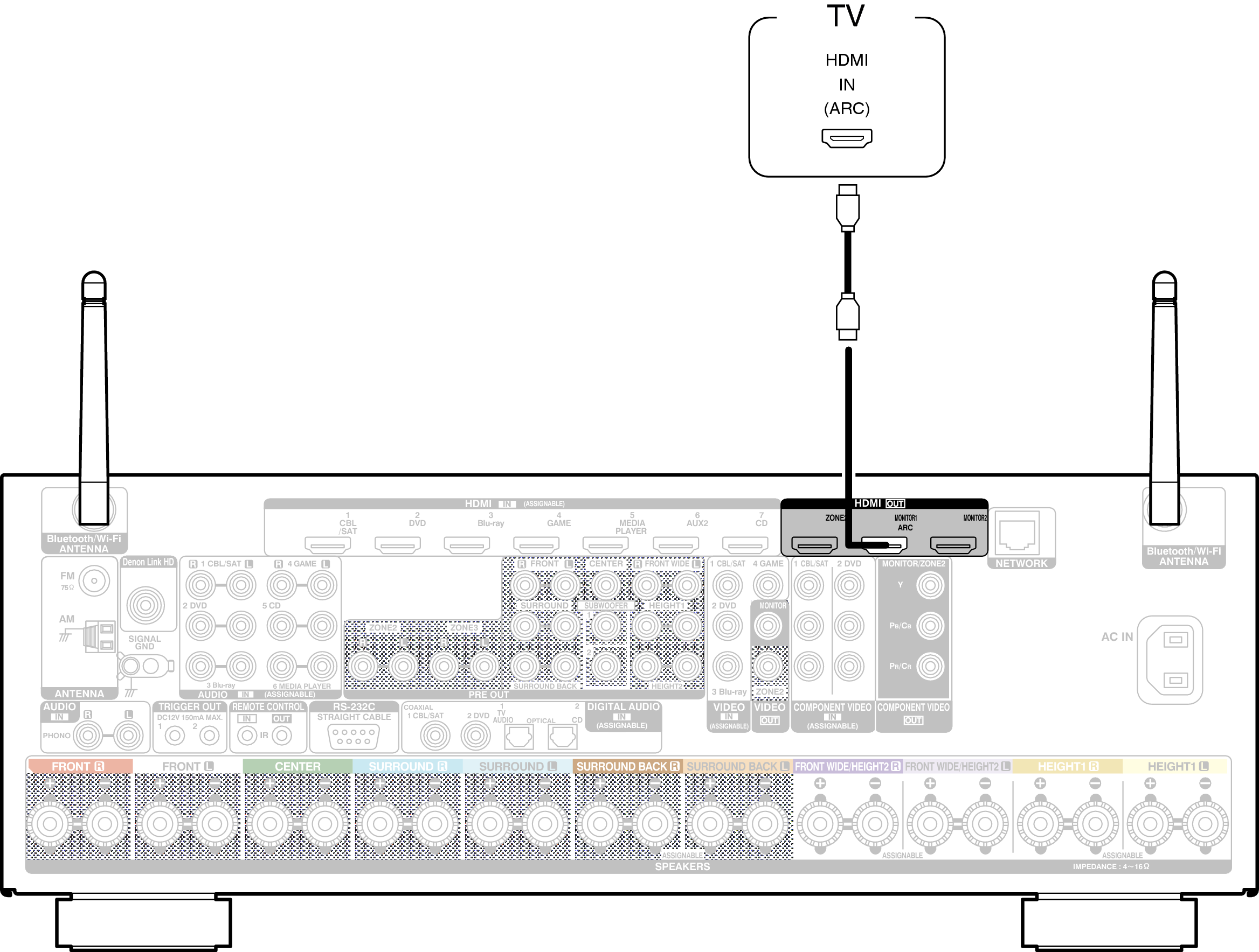 Gebruik een HDMI-kabel voor het aansluiten van een tv die compatibel is met de ARC-functie, op dit toestel.