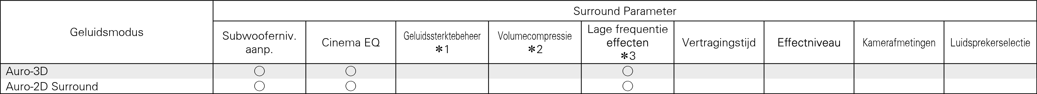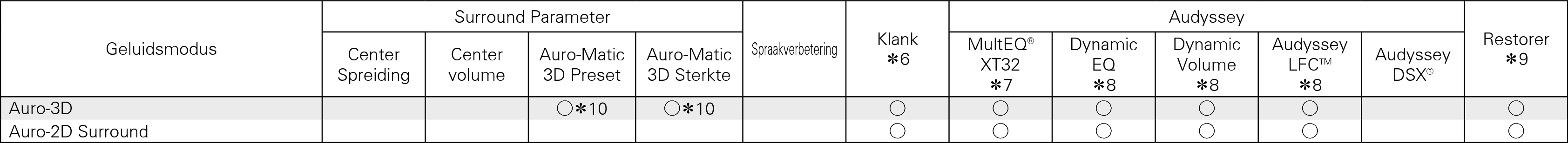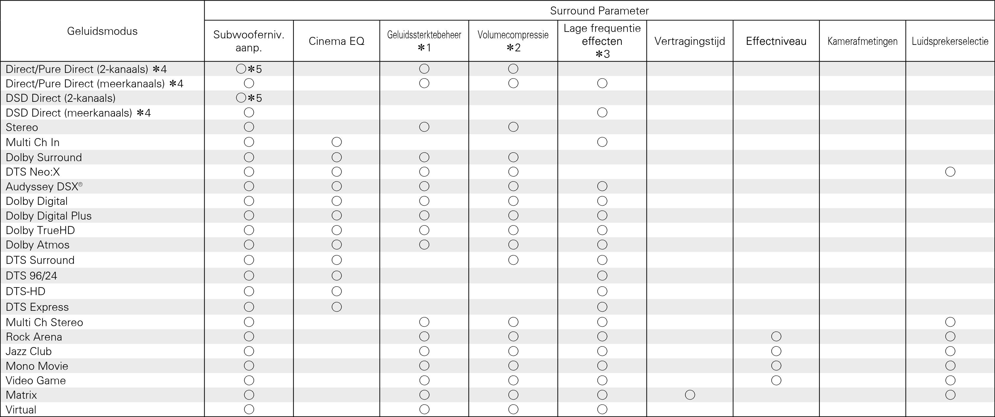 ∗1 - ∗3, ∗6 - ∗10 : Geluidsmodi en surround-parameterskoppeling