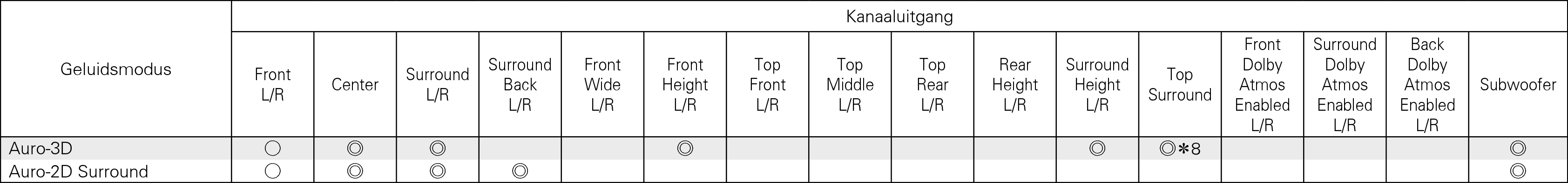 Dit wordt uitgevoerd als een Auro-3D-signaal wordt ingevoerd en het ingangssignaal Boven surround bevat.