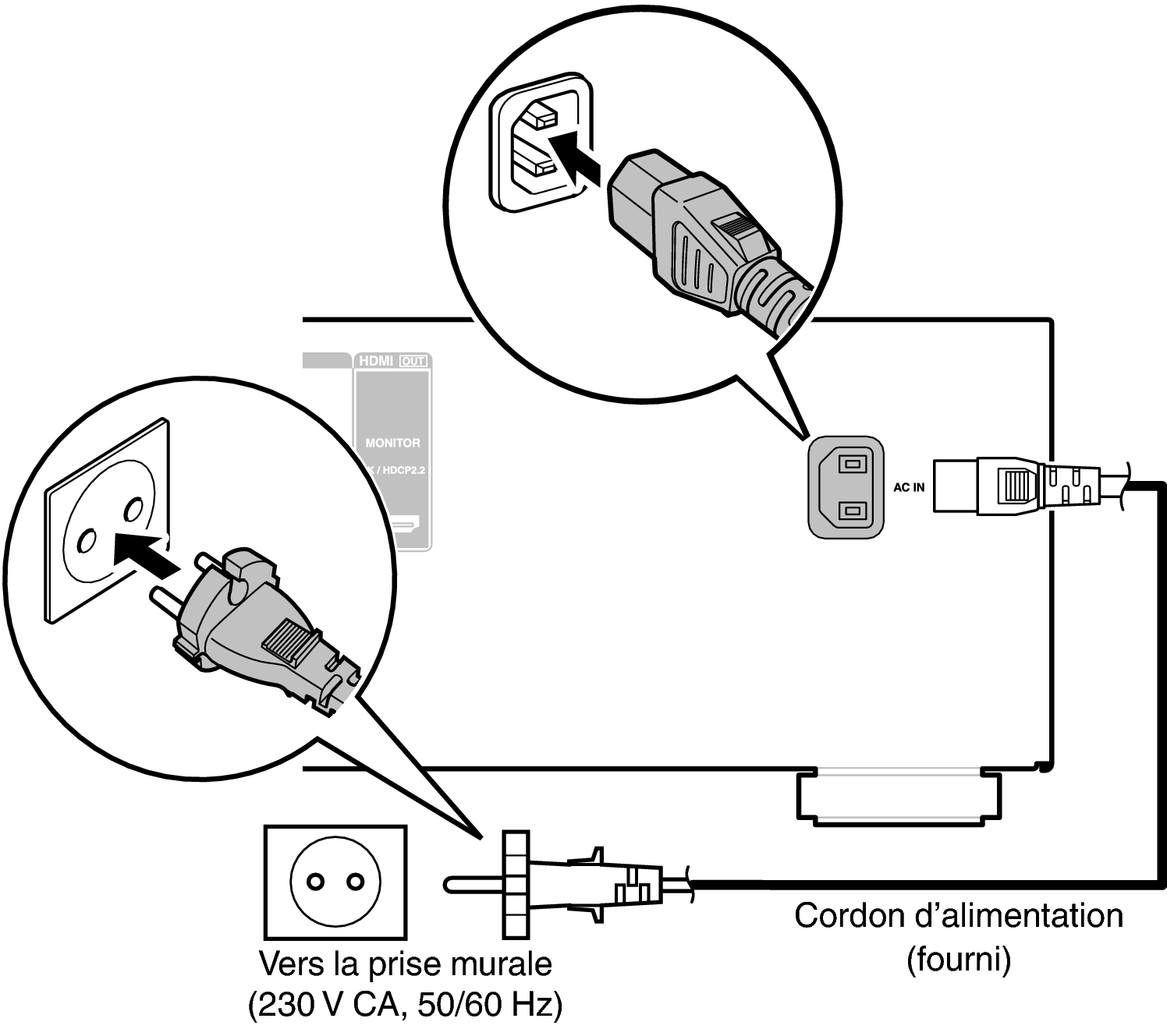 Une fois toutes les connexions effectuées, insérez la fiche d’alimentation dans la prise murale.