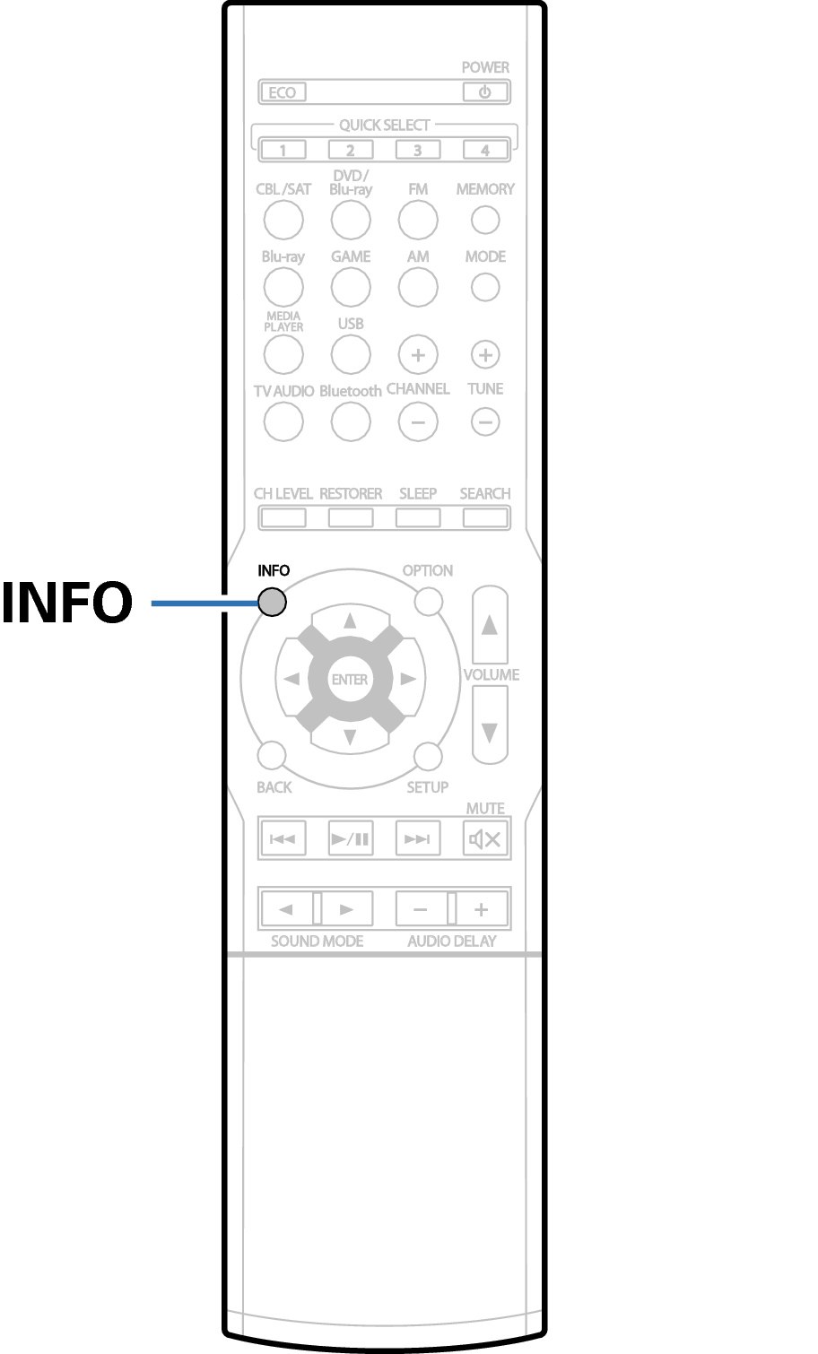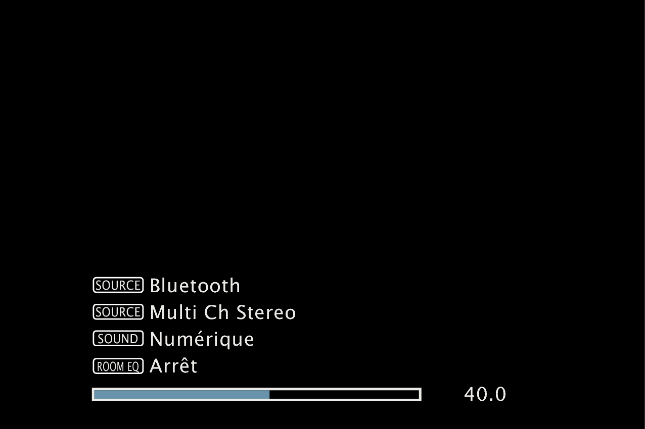 Appuyez sur INFO pour afficher le nom de la source d’entrée actuelle, le volume, le mode son et d’autres informations dans la partie inférieure de l’écran.