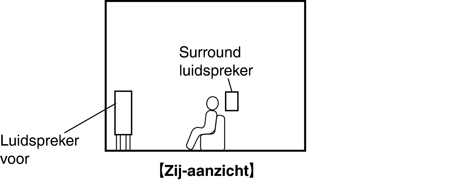 Gebruik de onderstaande afbeelding als richtlijn voor de hoogte waarop elke luidspreker moet worden geïnstalleerd. De hoogte hoeft niet exact dezelfde te zijn.