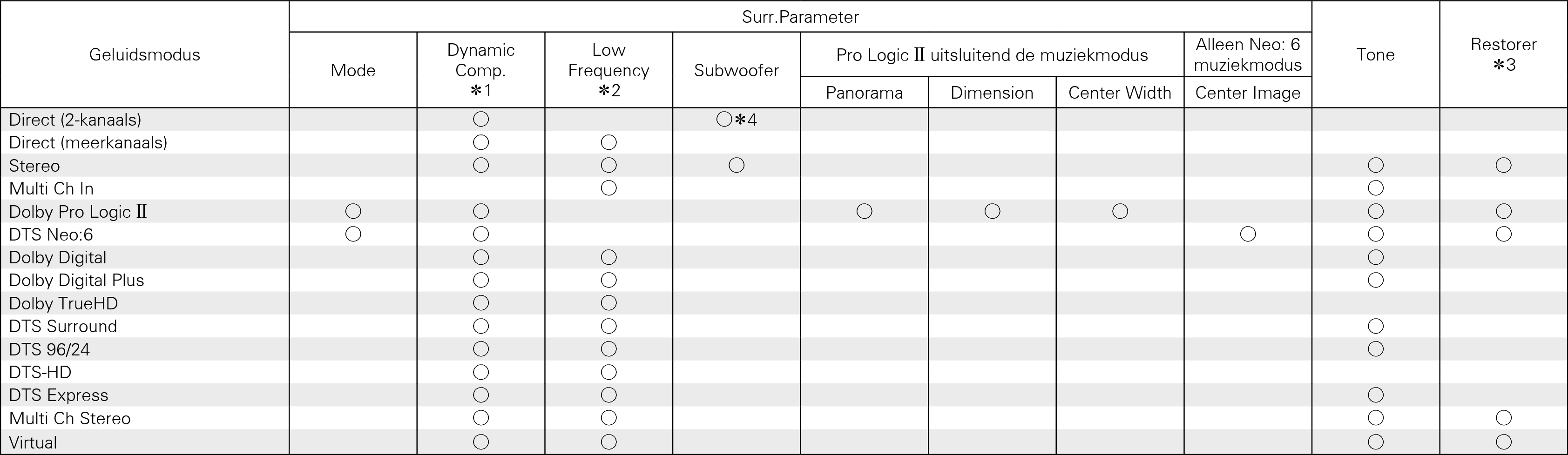 U kunt dit item selecteren bij weergave van een Dolby Digital- of DTS-signaal of DVD-audio.
