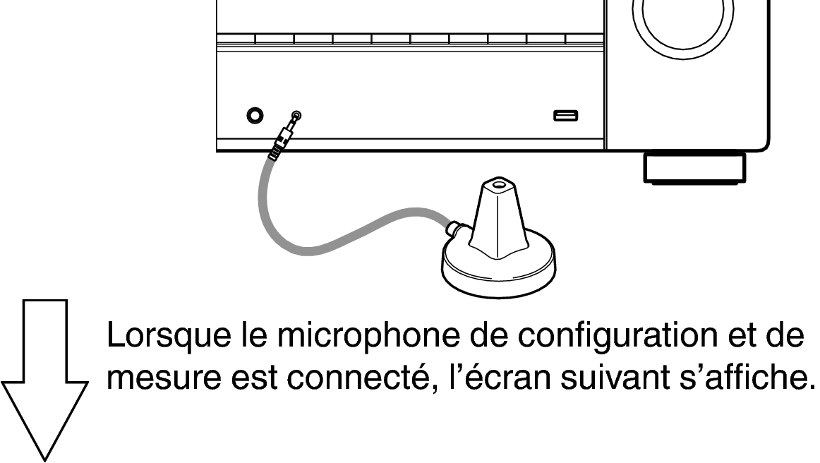 Lors de l’installation du microphone d’étalonnage du son, pointez l’extrémité du microphone vers le plafond et réglez la hauteur afin qu’elle corresponde à celle des oreilles d’un auditeur en position assise.