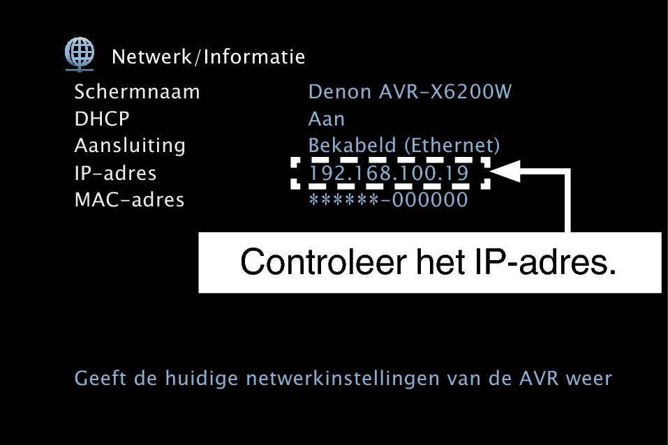 Controleer het IP-adres van dit toestel met “Informatie”. koppeling