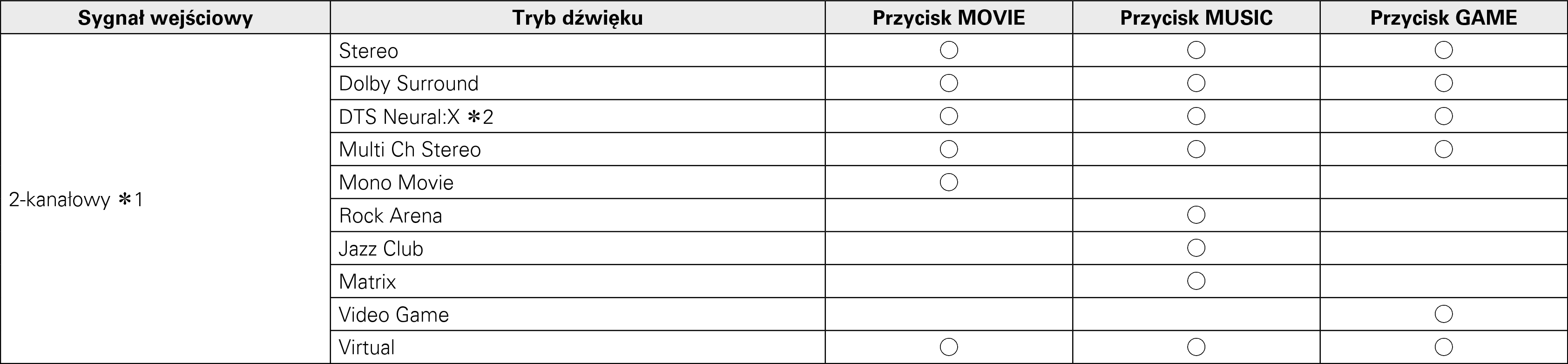Przeprowadź odtwarzanie stereo w przypadku sygnału wejściowego PCM. Gdy odbierany sygnał to Dolby Digital lub DTS, muzyka odtwarzana jest zgodnie z odpowiednim numerem kanału.