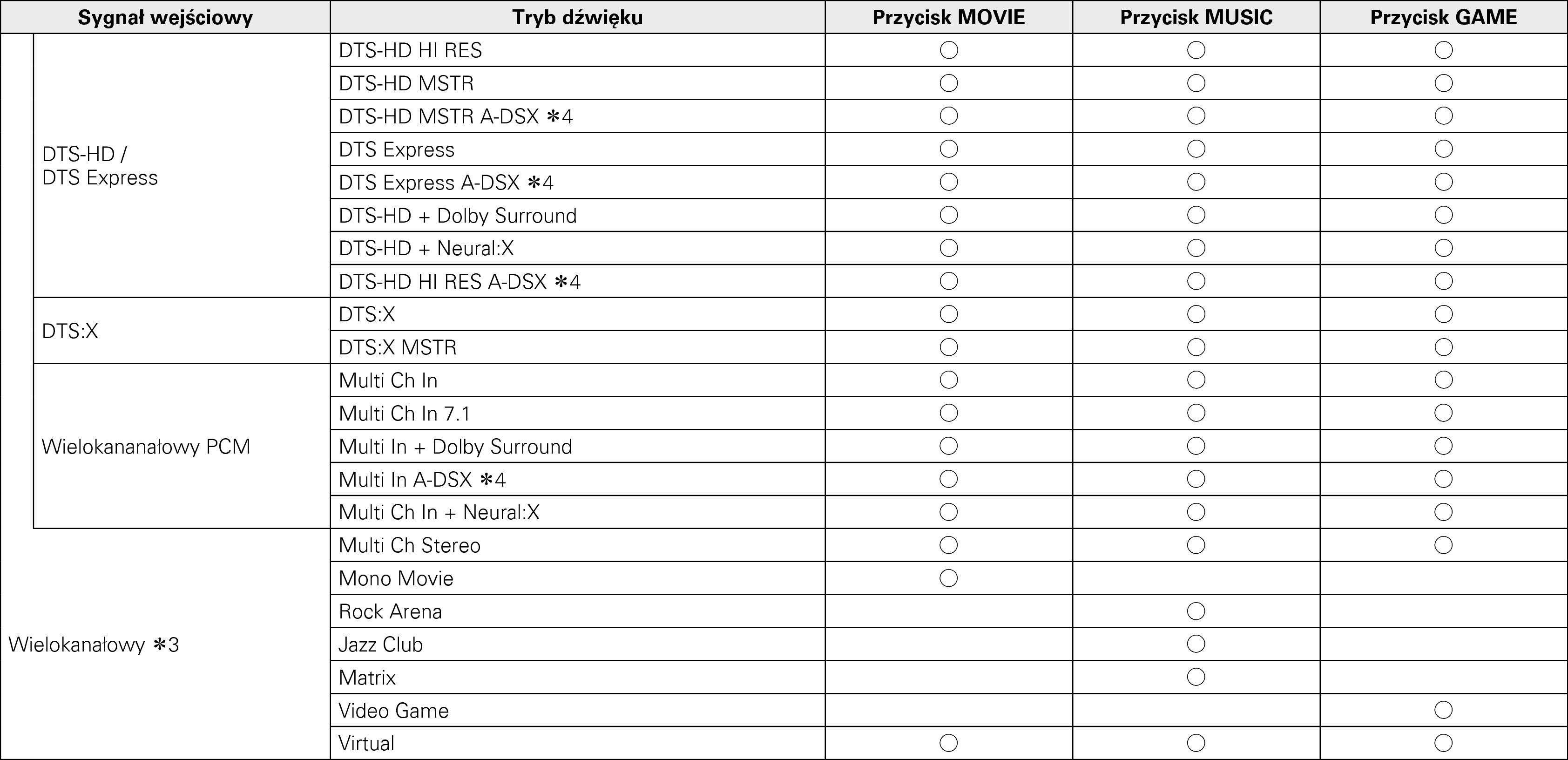 Tryb ten można wybrać w przypadku odtwarzania źródeł wielokanałowych PCM/DSD. |