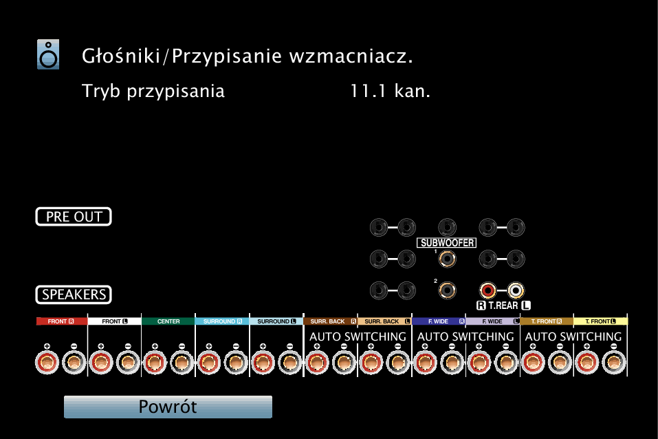 Konfigurowanie głośników i ustawienia “Przypisanie wzmacn.”