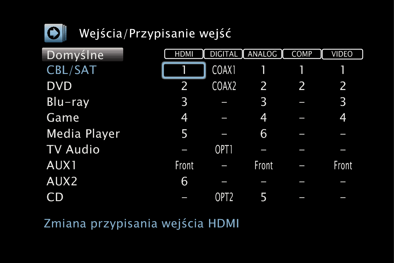 Ustawienia “Przypisanie wejść” powracają do standardowych wartości.