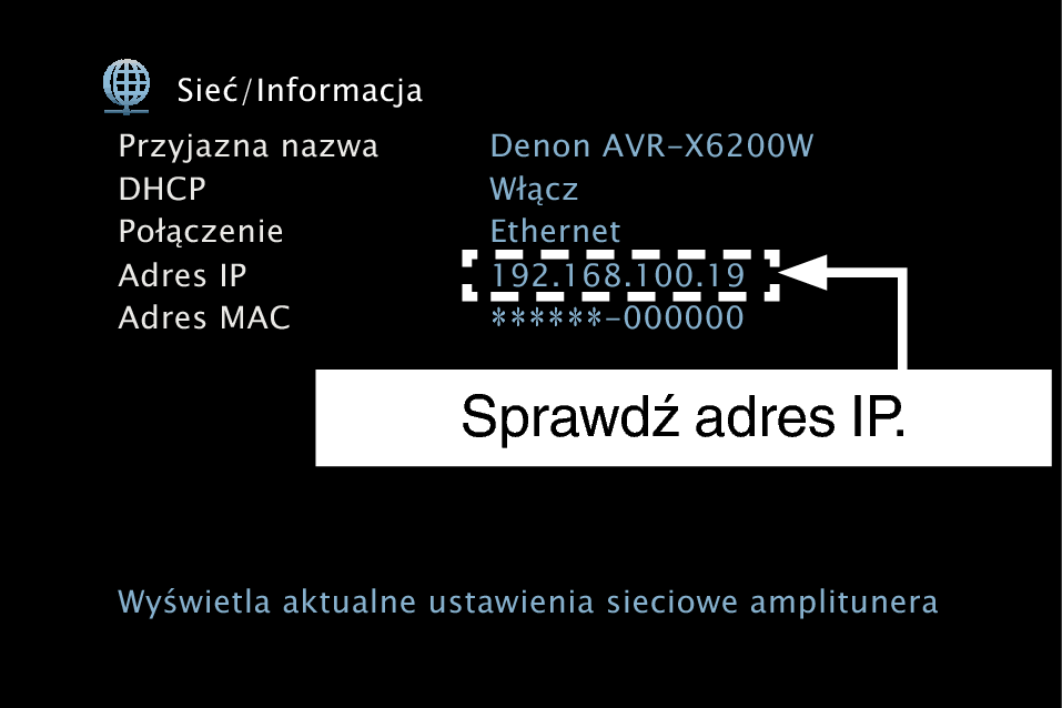 Przykładowo, jeżeli adresem IP przypisanym do amplitunera jest “192.168.100.19”, wprowadź “http://192.168.100.19”.