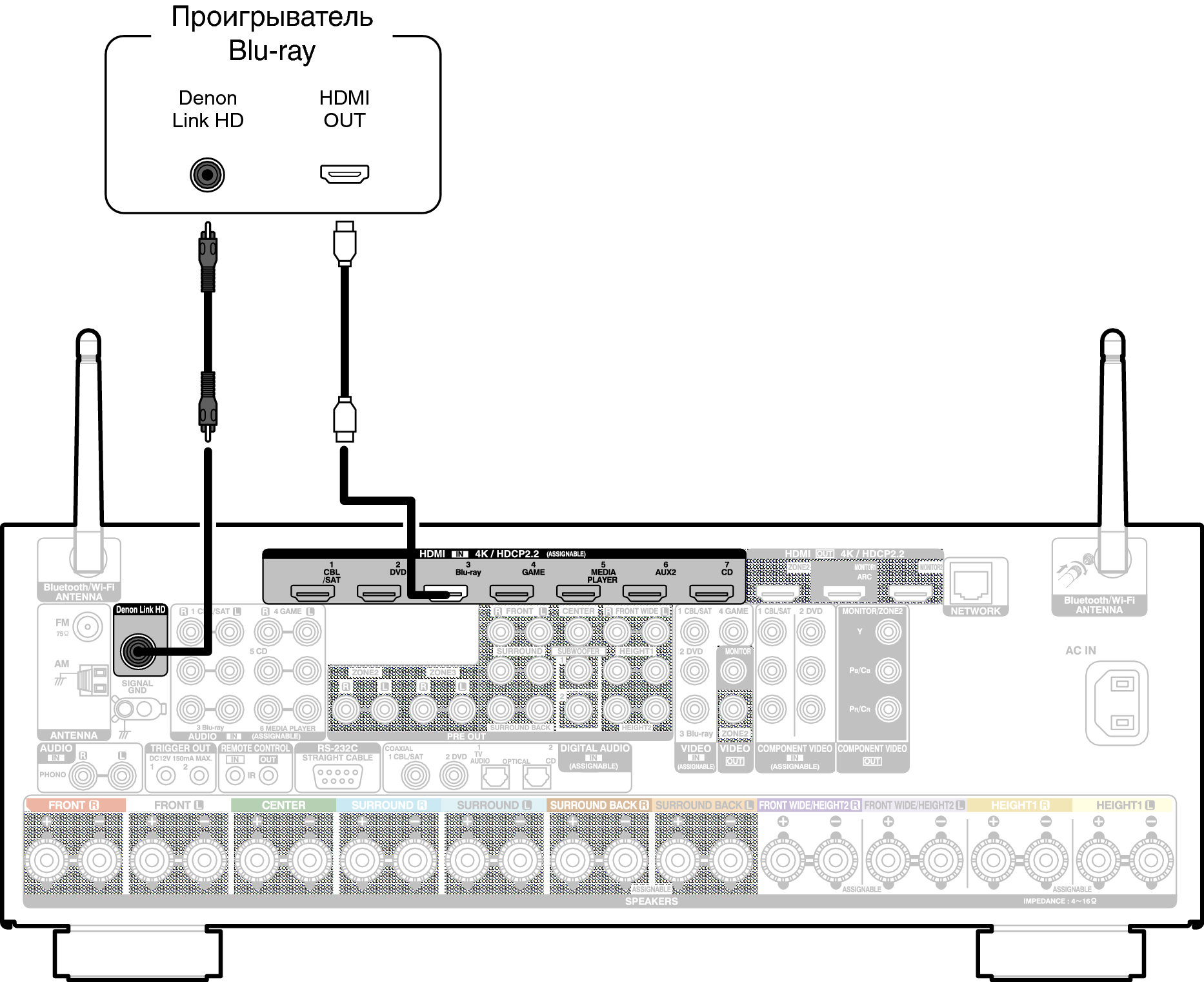 Для данного метода подключения необходимы соединения HDMI и Denon Link HD.