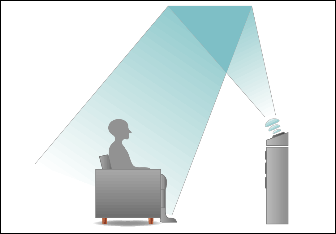 Dolby Atmos Enabled-högtalare reflekterar ljudet på taket för att låta ljudet komma uppifrån genom att använda en speciell uppåtriktad högtalare som placeras på golvet.