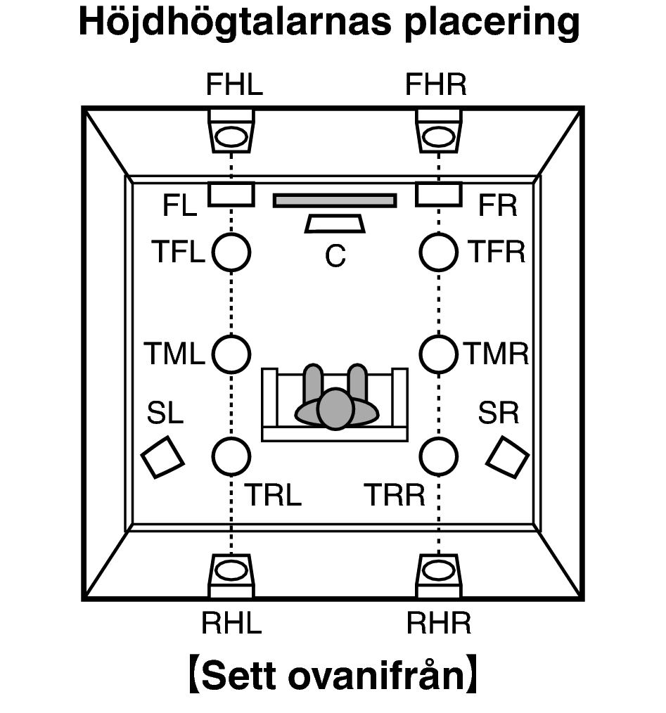 Layout inklusive höjdhögtalare och takhögtalare