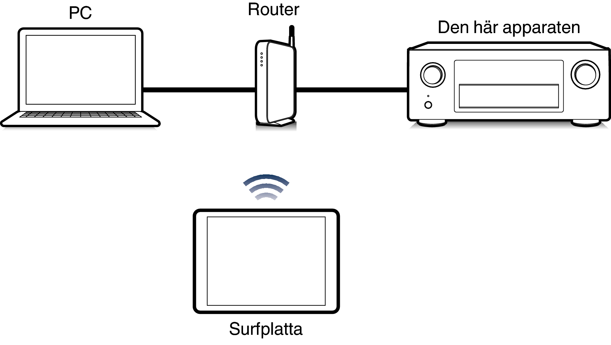 Den här enheten och datorn måste vara rätt anslutna till nätverket för att webbkontrollfunktionen ska kunna användas. (Ansluta till ett hemmanätverk (LAN)länk)