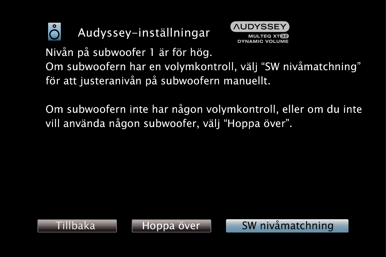 Felmeddelande för subwoofernivå och hur du gör en justering