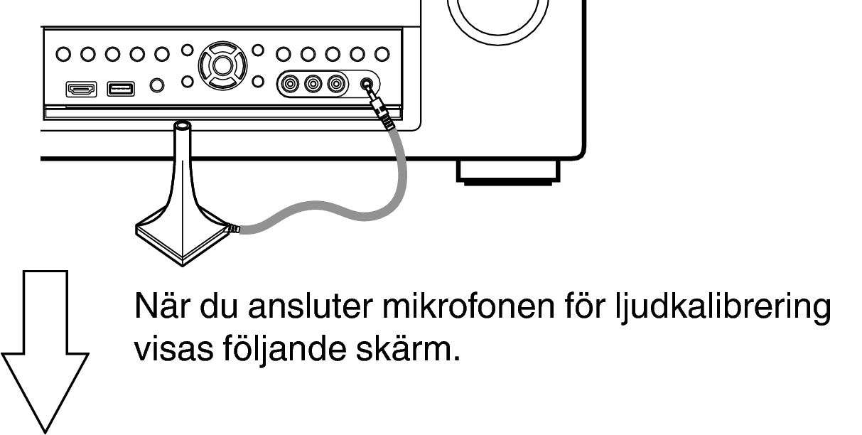 När du monterar mikrofonen för ljudkalibrering ska spetsen riktas mot taket och höjden ska vara den samma som lyssnarens öron då den sitter ner.