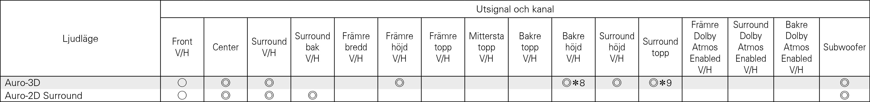 För bästa Auro-3D-upplevelse rekommenderas surroundhöjdhögtalare. Däremot kan du behöva byta ut bakre höjdhögtalare från en Dolby Atmos-högtalarinställning istället för surroundhöjdhögtalare.