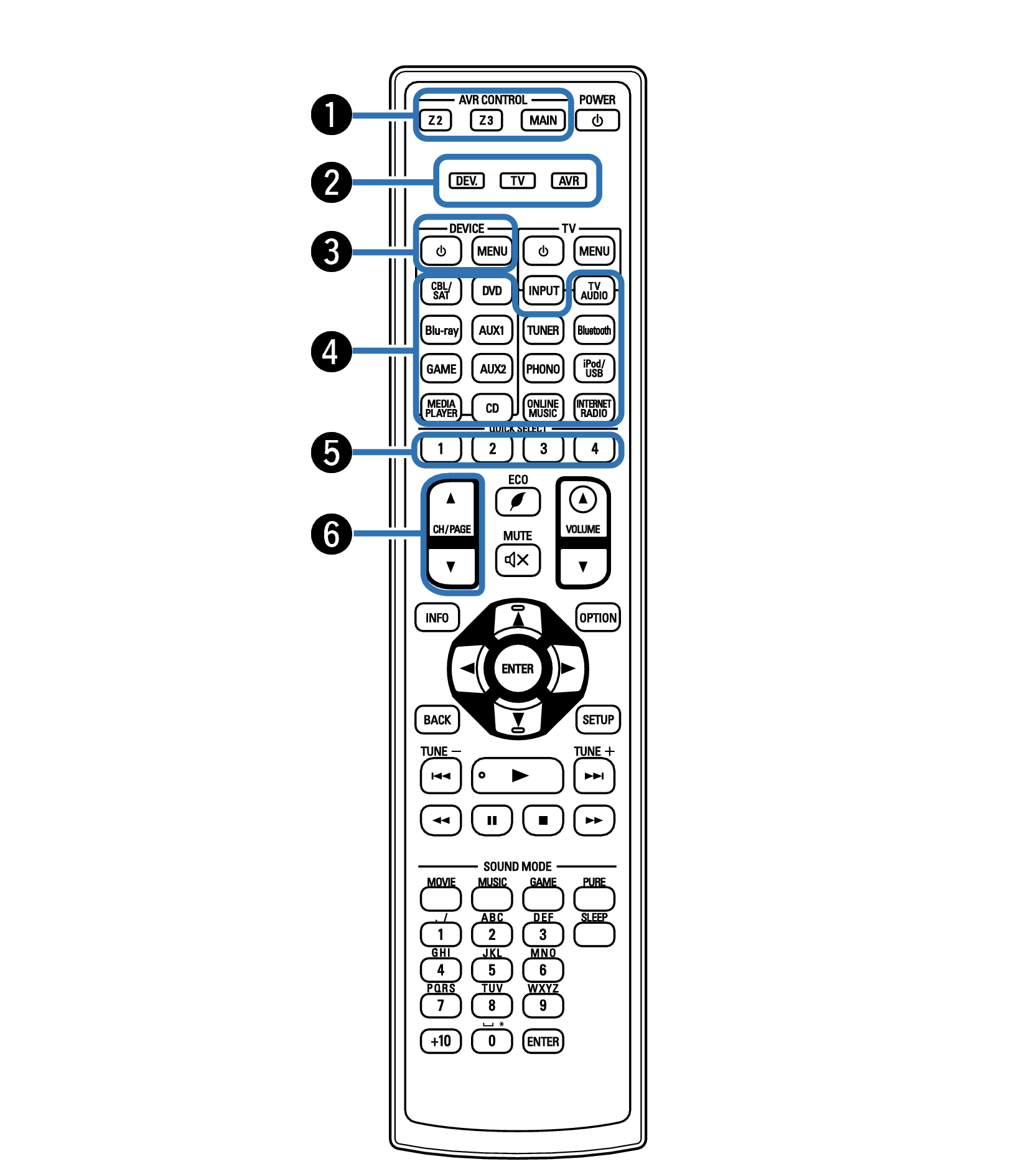 Används för att byta zon (MAIN ZONE, ZONE2, ZONE3) som styrs med fjärrkontrollen.