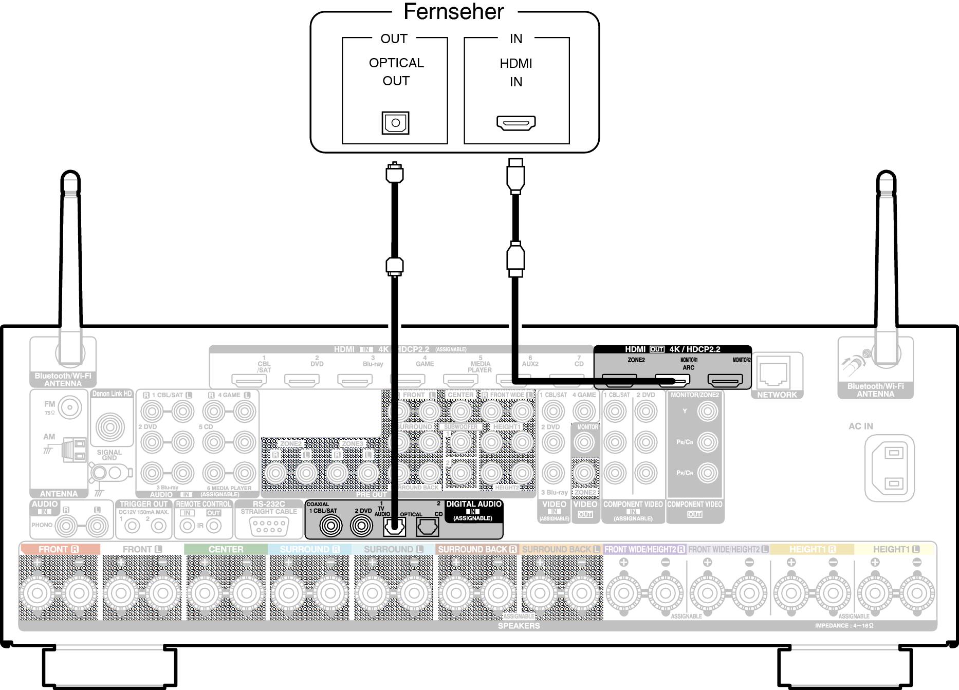 Verwenden Sie ein HDMI-Kabel, um den Fernseher an dieses Gerät anzuschließen.