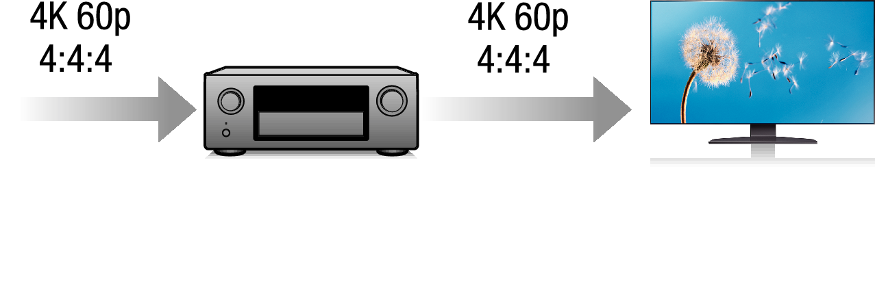 Bei Verwendung von 4K Ultra HD (High Definition) wird für Videosignale eine Eingangs-/Ausgangsgeschwindigkeit von 60 Bildern pro Sekunde (60p) erreicht. Wenn Sie das Gerät mit einem Fernseher verbinden, der mit 4K Ultra HD und dem 60p-Videosignaleingang kompatibel ist, werden auch Videos mit schnellen Bewegungen durch die hochauflösenden Bilder besonders realistisch dargestellt.