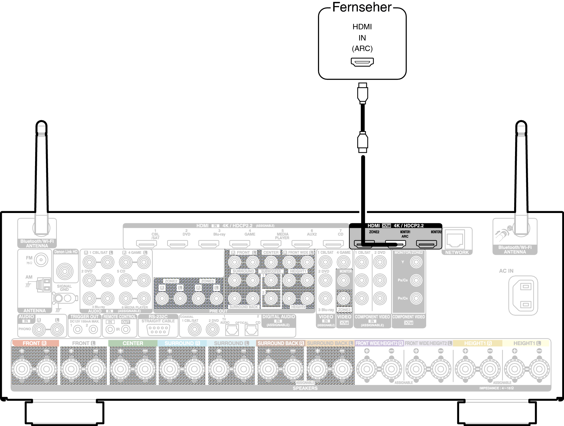Verwenden Sie ein HDMI-Kabel, um einen mit der ARC-Funktion dieses Geräts kompatiblen Fernseher anzuschließen.