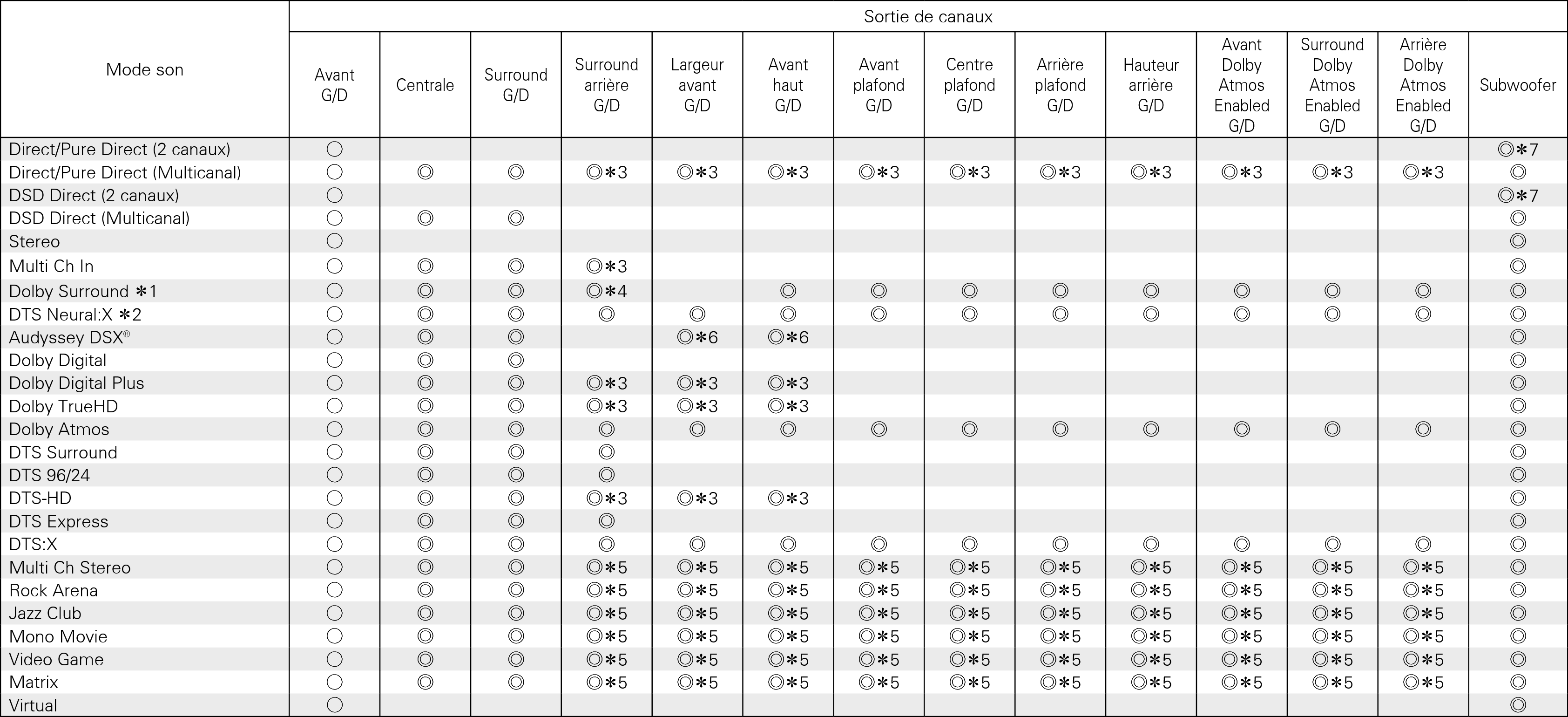 Le mode son comprend “DTS Neural:X” et les mode de son qui ont “+Neural:X” dans le nom du mode son.