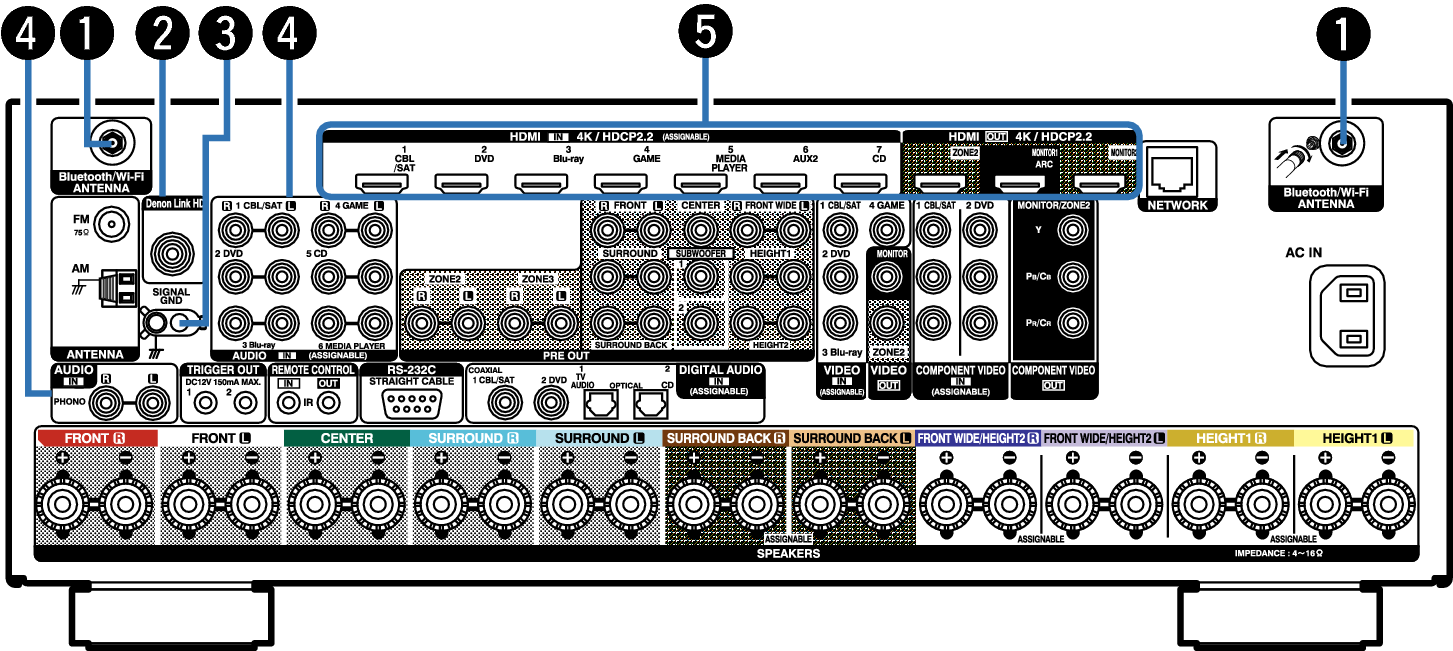 Wordt gebruikt voor het aansluiten van een met Denon Link HD-compatibele Blu-ray Disc-speler. koppeling