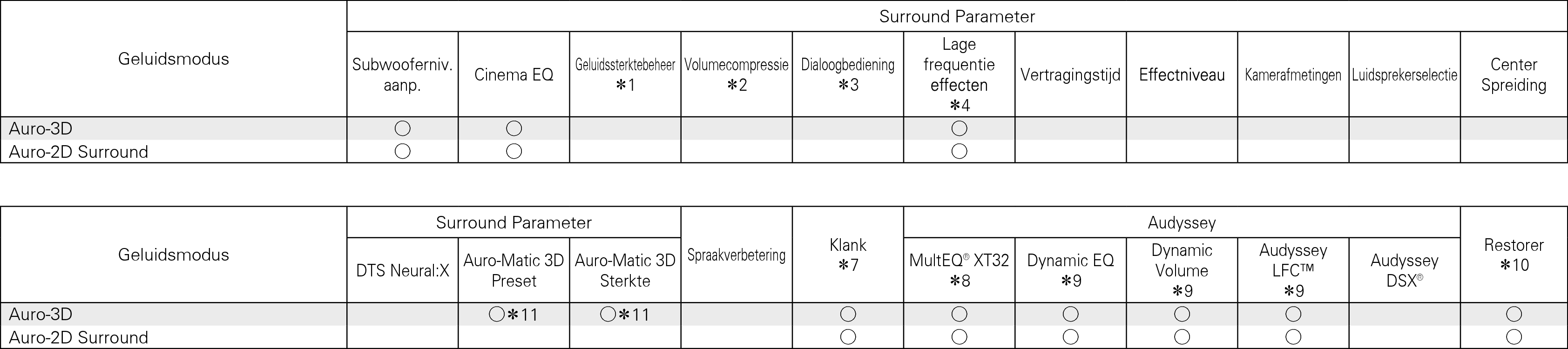 Dit item kan niet worden ingesteld wanneer Audyssey® setup (luidsprekerkalibratie) niet is uitgevoerd.
